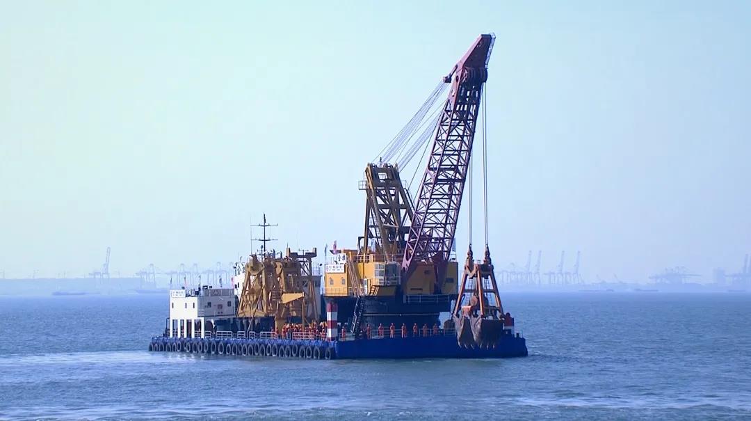 外海作業(yè),瞬息萬(wàn)變。隨著河道變窄,茫茫碧波被黃沙翻涌取代,所有人不由地緊張起來(lái)。