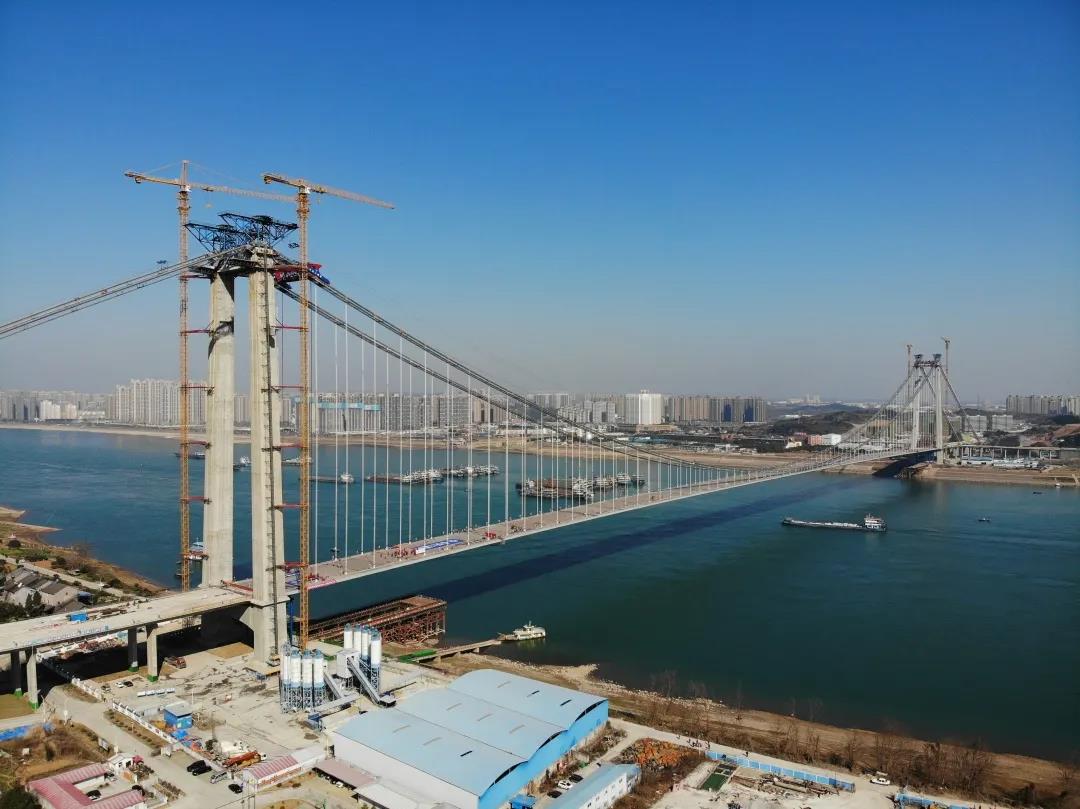 伍家崗長江大橋是宜昌城區首座主跨超千米的大橋,全長2.8公里,主橋為雙塔鋼箱梁懸索橋,采用一跨過江方式建設,跨度達1160米。自2017年開建以來,中交二航局項目團隊便積極開展科技攻關,大膽創新,取得多項先進成果,最終實現了大橋毫米級精度合龍。