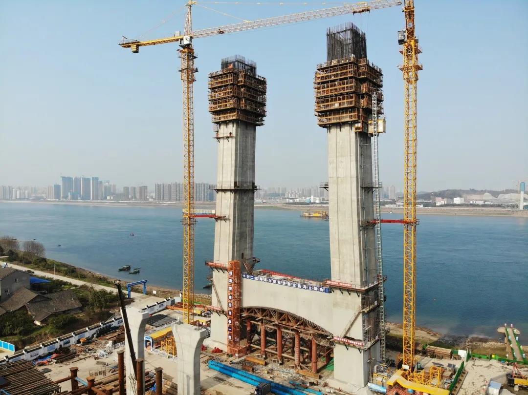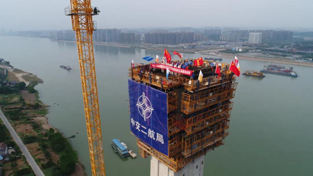 “空中變軌”的成功實施,不僅確保了157米高的大橋南岸主塔內外兼修、順利封頂,這一技術創新還獲得了國家實用新型專利。