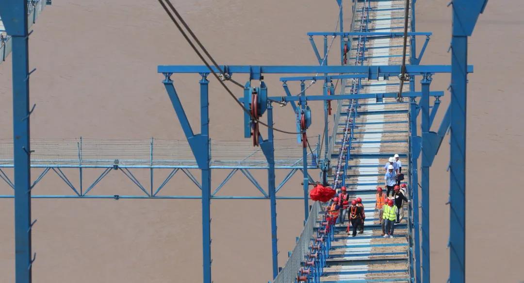 “眼睛”就是現場安裝的各種傳感器,實時采集貓道、塔頂門架、卷揚機的狀態數據,監控索股拽拉器的運行位置、通過速率、完成進度,還能自動測量索股溫度、間距,以及風速風向、索塔偏移范圍。“大腦”則是這些數據與影像信息集中呈現的智能數控平臺,對相關信息進行實時關聯分析,為平臺子系統的控制指令發送與風險預警提供智能支撐。