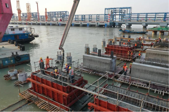 ?中交集團所屬中交三航局承建的徐圩液體散貨碼頭項目是江蘇連云港石化產(chǎn)業(yè)基地的重點工程,計劃新建2個10萬噸級液體散貨泊位,用以滿足港口運輸及化工倉儲需求。春節(jié)前,項目團隊基本完成了沉樁施工,順利進入碼頭上部結(jié)構(gòu)施工階段。“構(gòu)件安裝作為上部結(jié)構(gòu)的重要部分,它的效率直接決定了之后的面板安裝及面層進度。”王國正介紹。