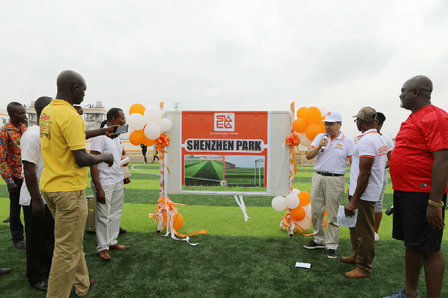 在中加友誼路旁邊,毗鄰幾內亞灣海邊,加納安所固電廠興建了一座當地最好的人造草皮社區足球場“Shenzhen Park ”,并對外開放。這里不僅成為中加體育文化促進交流的好場所,還吸引了很多攝影師慕名前來拍攝婚紗照,成為當地的“婚紗照勝地”。