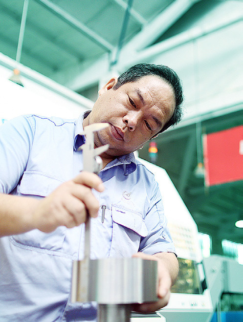 后來分廠的新進設備越來越多, 數控機床逐漸替代了普通機床,單位領導欣賞馬躍輝在工作中表現出的闖勁,讓他去學習三坐標加工中心:“別人有三個月學習時間,你只有半個月, 要盡快把這臺機床用起來。”面對領導的高標準嚴要求,馬躍輝欣然接受, 對他來說這是一次難得的學習機會。