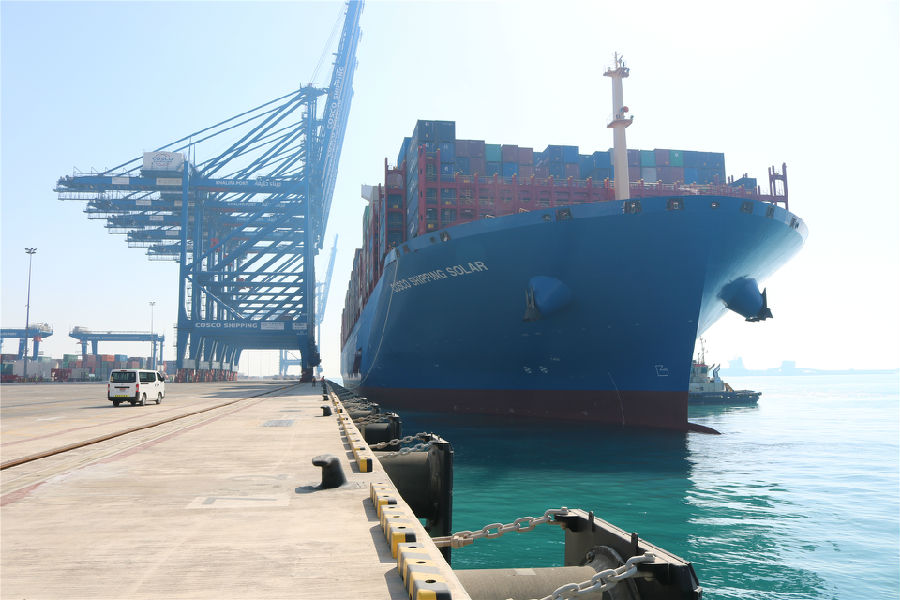 2019.5.26中遠海運港口阿布扎比碼頭迎世界最大集裝箱船“中遠海運太陽”掛靠。