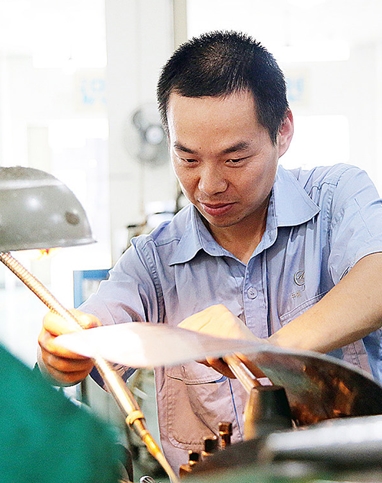 王樹臣是熊文凱帶的第一個徒弟,他跟熊師傅學(xué)習(xí)的時候,正逢生產(chǎn)線上人員需求短缺。那一年熊文凱年僅24歲,入職也只有5個年頭,年齡相當(dāng)?shù)膸熗絺z更多時候是以平等的方式交流學(xué)習(xí)。這種新型的授徒模式讓王樹臣學(xué)得開心、悟得透徹、進步飛快。“別看我?guī)煾祩€頭小,可濃縮的都是精華。”熊文凱精湛的技藝、敬業(yè)的品質(zhì),一直讓王樹臣感佩不已。如今,王樹臣早已是武漢市“青年崗位能手”,公司“十佳青年”,由于技能過硬,被抽調(diào)到新的生產(chǎn)線。