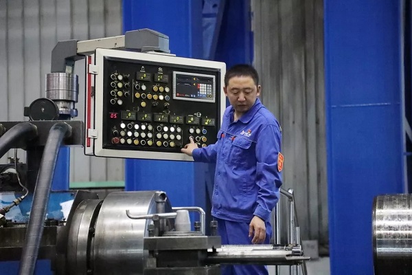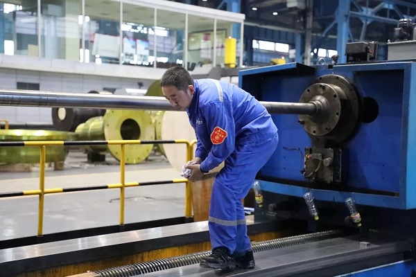 一襲藍衣,雙目凝神,“刀客”單指輕點,啟動數(shù)千萬元的“豪車”——長達56米的大型數(shù)控鉆床。十多米長的鉆桿上,掛著一座刀盤,各類刀具角度各異,剛搭上銀色的鋼錠就不停抖動。
