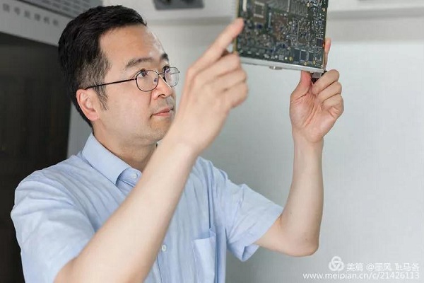 ?2017?年?6?月?29?日,在中國電科38所微波集成中心,吳劍旗正在專心致志處理芯片貼裝問題