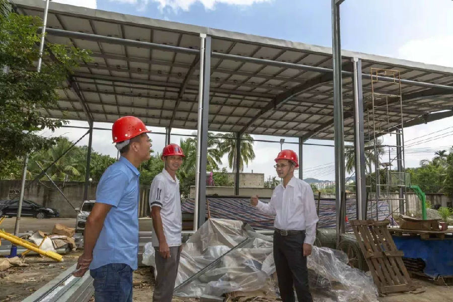 五指山市是國家能源局確定的光伏扶貧重點縣,老羅抓住這個政策做起了文章。選定通什鎮福利村13戶貧困家庭作為試點,引進社會捐助的50萬元作為項目建設資金,老羅僅用30天時間就在福利村建立起了五指山市首個村級扶貧光伏電站。
