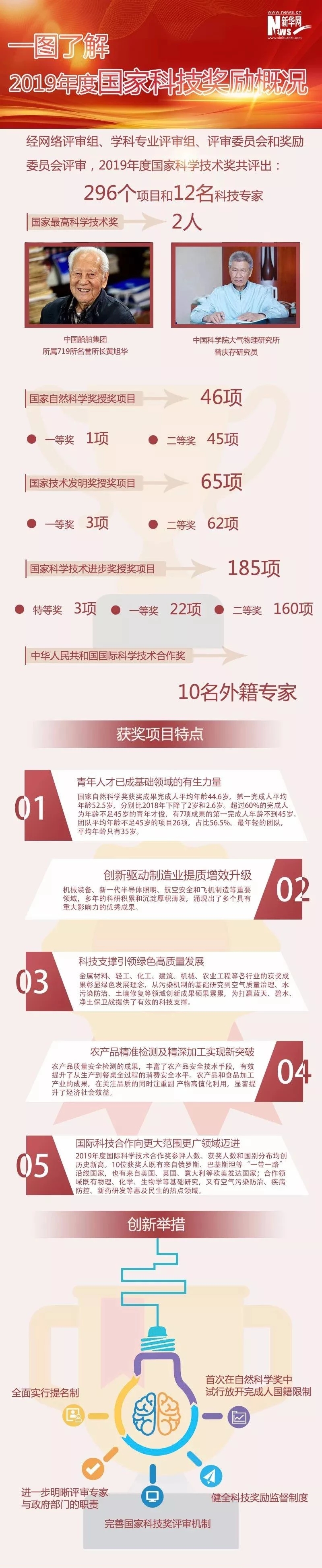 國家科學(xué)技術(shù)獎(jiǎng)勵(lì)每年評(píng)審一次。經(jīng)學(xué)科專業(yè)評(píng)審組、評(píng)審委員會(huì)和獎(jiǎng)勵(lì)委員會(huì)三級(jí)評(píng)審,2019年度國家科學(xué)技術(shù)獎(jiǎng)共評(píng)選出296個(gè)項(xiàng)目和12名科技專家。