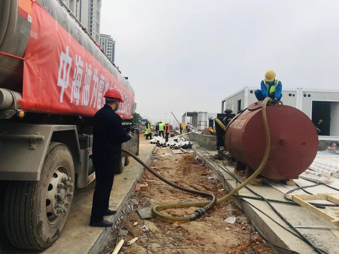 1月31日,白登文和陽光站的兩名員工一起代表中國海油捐贈15噸車用柴油給武漢雷神山醫院。