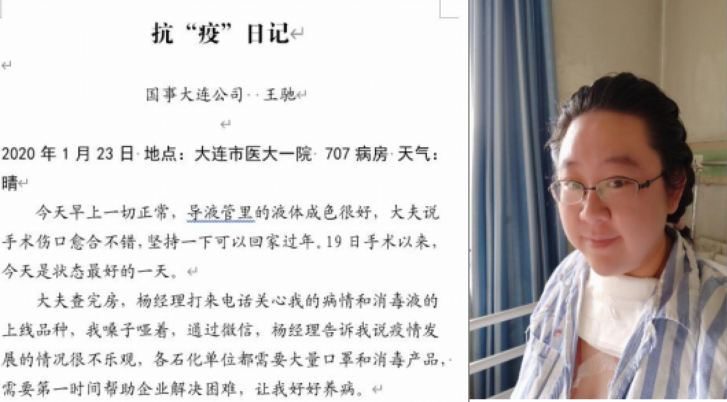 “從來沒有感覺武漢的疫情離我如此之近,我雖然做不了什么大事,但已經牽頭負責日化用品框架協議兩年多了,有一些經驗,雖然說話費勁,但還可以微信聯絡,多一個人盡一份力總是好的。”這是她在自己的術后抗“疫”日記中提到的。