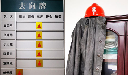 在安監部“崗位去向牌”上,同事們依舊保留著袁國平的名字。在辦公室的角落里,同事們依然保留著袁國平的“戰袍”——高筒雨靴、安全帽和雨衣。大家都不愿相信,天天堅守崗位的鐵漢子,竟然以這樣令人心碎的方式“下班”了。