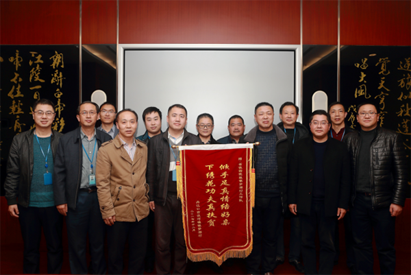 這一天,中國鐵建所屬鐵四院精準扶貧定點幫扶的湖北省十堰市丹江口市浪河鎮銀夢湖村的村民,到武漢專程送達“脫貧出列”的喜訊,并贈送了一面題有“傾手足真情結好親 下繡花功夫真扶貧”的錦旗。