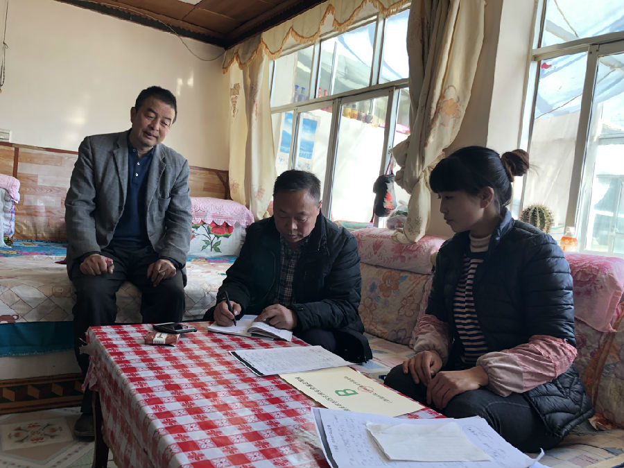 初到堿溝村,魏寶國(guó)做的第一件事就是走遍這里的每家每戶。堿溝村共有252戶,但居住得極為分散,第一次來(lái)的時(shí)候他還跟村書(shū)記開(kāi)玩笑說(shuō)堿溝村的“溝溝彎彎”比得上互助的十八盤(pán),然而就是這些“溝溝彎彎”,他走了無(wú)數(shù)遍。魏寶國(guó)工作細(xì)致,只要進(jìn)了一戶人家,他就會(huì)把情況事無(wú)巨細(xì)地記在自己的小本子上。因?yàn)椴惶珮?biāo)準(zhǔn)的青普話,他會(huì)特意把說(shuō)話的速度放慢,確保每一個(gè)問(wèn)題都得到準(zhǔn)確的回答。每當(dāng)他看到村民們即使條件再困難也要把他們認(rèn)為最好的東西拿出來(lái)招待自己時(shí),他在推辭的同時(shí)更加堅(jiān)定了帶領(lǐng)他們脫貧致富的決心。最終,通過(guò)綜合考慮住房、教育、健康等不同方面的情況,堿溝村共識(shí)別出貧困戶36戶,全面完成了建檔立卡工作。從此,這36戶貧苦戶被魏寶國(guó)天天掛在嘴上,惦在心里。