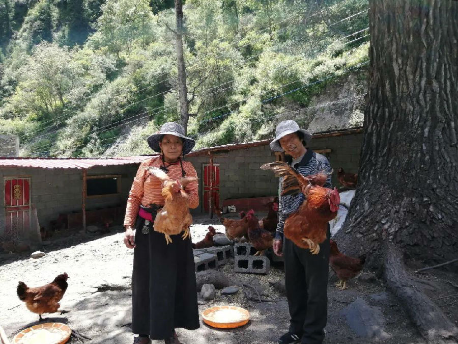 2019年,東方電氣幫助下大石溝村在村委會旁建立了跑山雞養(yǎng)殖場,受到了當(dāng)?shù)卮迕窭溆觯踔烈欢螘r間無人愿意來養(yǎng)雞。東方電氣派駐壤塘縣扶貧干部張輝和王彬?qū)⒛抗馔断蛄松杂屑仪蒺B(yǎng)殖經(jīng)驗(yàn)的文勝學(xué),迫于觀念壓力,幾次接觸感覺收獲甚微。2019年4月的一天,文勝學(xué)所在麥爾多寨通寨硬化路施工,張輝、王彬從2900米海拔的河谷地帶徒步3小時到達(dá)海拔3400米的文勝學(xué)家里,通過3個小時推心置腹的交流,文勝學(xué)愿意頂著壓力養(yǎng)雞、養(yǎng)蜂,張輝、王彬心里懸著的石頭終于落下了。