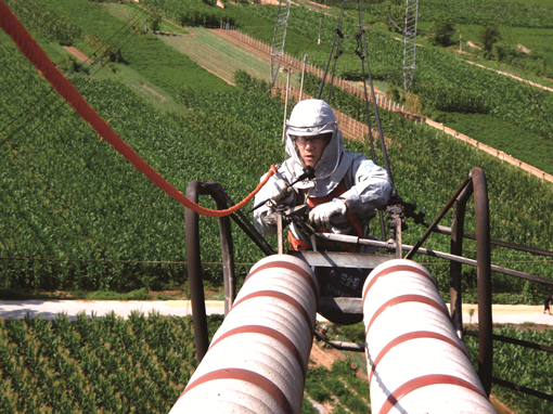 從發明走線專用手套開始,王進和他的同事開啟了創新之路。2011年2月28日,±660千伏銀東直流輸電工程雙極投運。該工程線路多項技術在當時都處于世界領先水平,國內外均無可借鑒的帶電作業標準及經驗。工程投運后,王進和同事們就著手研究帶電作業工作。經過他們的努力,±660千伏直流輸電線路帶電作業安全距離、安全防護指標及措施最終確定。在成功進行帶電作業的基礎上,他們編制完成了《±660千伏直流輸電線路帶電作業技術導則》,研制了帶電作業屏蔽服、電位轉移棒、大刀卡、四線吊等工器具,填補了多項技術空白。