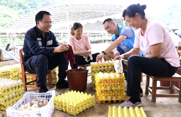 覃浪村農聯合作社蛋鴨養殖喜獲豐收。(馬華斌 攝)