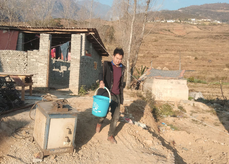 沈先祥為村里殘疾老人挑水