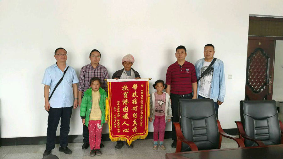 村民歐支果為電信公司送來“幫扶結對用真情,扶貧濟困暖人心”錦旗