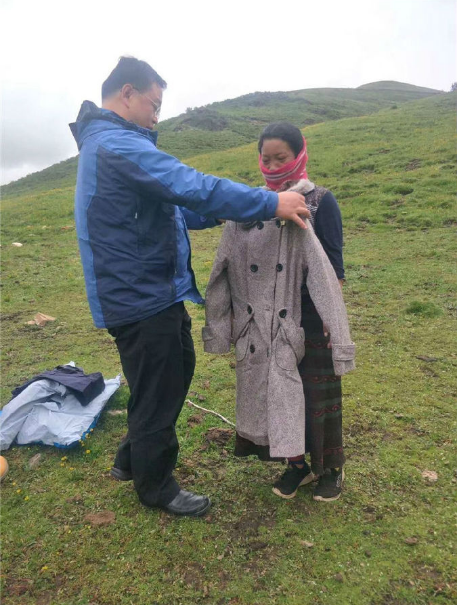 人間有溫情,一次下鄉(xiāng)中,他看見一老鄉(xiāng)家大大小小有10個孩子,大冬天的都穿得很單薄,自帶卷卷毛拉著小鼻涕的可愛模樣瞬間讓他萌生了一個念頭,“讓冬天不再寒冷”。他發(fā)動北京、上海以及全國各地的朋友向牧區(qū)捐贈衣服,甚至遠(yuǎn)在新加坡的朋友都捐款了。采訪那天,記者走進(jìn)他的辦公室,辦公桌前、門后沒來得及送出去的衣服還有好幾包,已送出去的有1500多件衣服。久治縣地處偏遠(yuǎn),快遞只有郵政能送達(dá),為了寄送衣服,他的一個朋友甚至花費了2500元郵資,這些都是被他在高原的精神所感動所致。藏區(qū)牧戶無論是大人還是孩子收到衣物時都很開心,那些開心又讓他通過微信及圖片等反饋給捐贈人,看到后都讓人欣慰而喜悅。他還細(xì)心地給所有捐贈衣服的愛心人士一一寫署名感謝信,收到感謝信的愛心人士都很開心和滿足,有人將感謝信發(fā)在微信朋友圈里,并寫道“今天是最充實和開心的一天,正能量滿滿,一天好心情。”他又通過個人努力解決了兩名哇賽鄉(xiāng)建檔立卡戶到西藏拉薩就業(yè)問題。