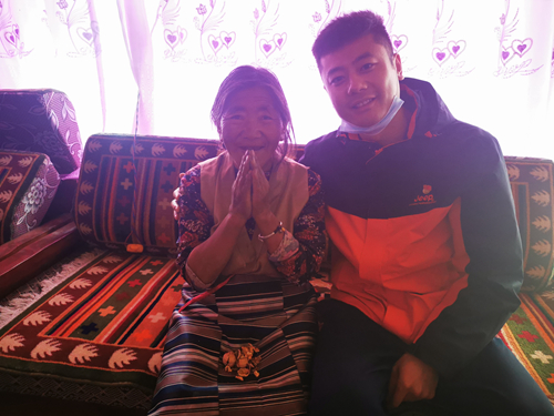 2019年5月,嘎堆黨支部再次去到格桑卓嘎老人家里,老人像是見到親人一樣,以藏族特殊“掌心相對(duì)”的方式表達(dá)著謝意,并拿出家里積攢的青稞爆花和酥油茶“招待”最親的客人。