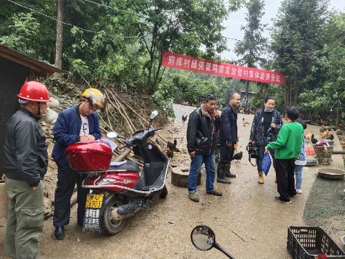 今年5月,府庫村迎來一次新鮮的村集體經濟分紅,這次分紅的不是白花花的錢,而是嘰嘰喳喳的小雞仔,村民集聚在村頭養殖大棚外,躍躍欲試地等待6000羽綠殼蛋雞苗的免費分發。村民彭煉喜笑顏開地數著自家分到的雞仔說道:“有了這48只雞仔,下半年又能生下滿滿的富貴蛋,幫我們買還幫我們銷,這下不愁拔窮根了!”