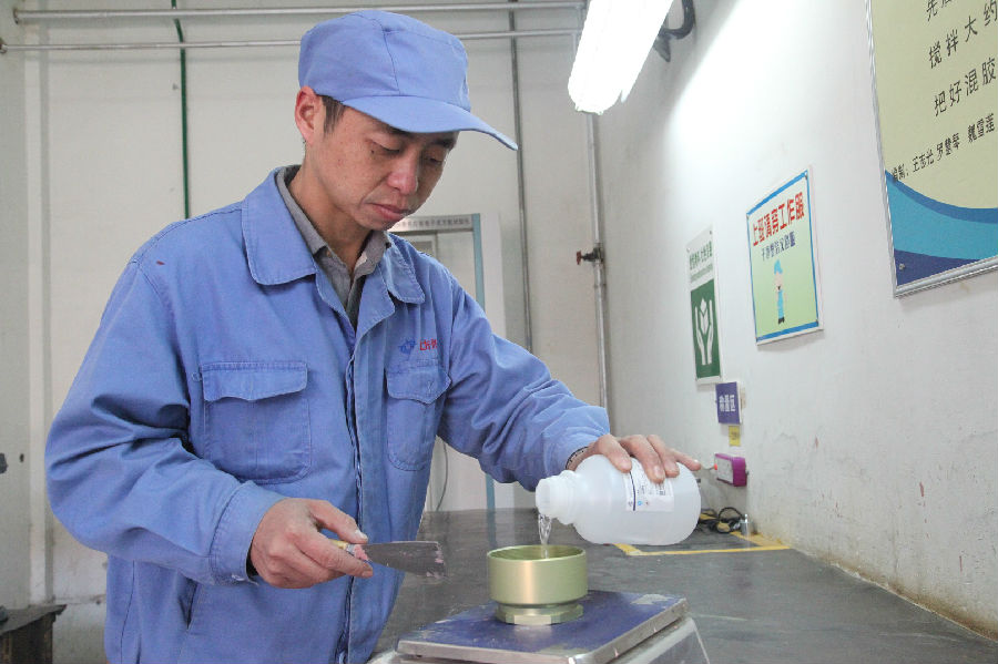 2018年,一批某產品在進行包裝時,細心的王志光發現產品表面存在著許多小氣孔,這是以往生產未發生過的,他隨即叫停了產品包裝并及時向分廠反映情況。王志光連夜加班做了三個對比方案。通過對比一一排查,終于找到了產生原因。隨后,在他的努力下,經過大量的配方論證試驗后終于解決了產品表面氣泡問題,確保了某重點產品的交付。