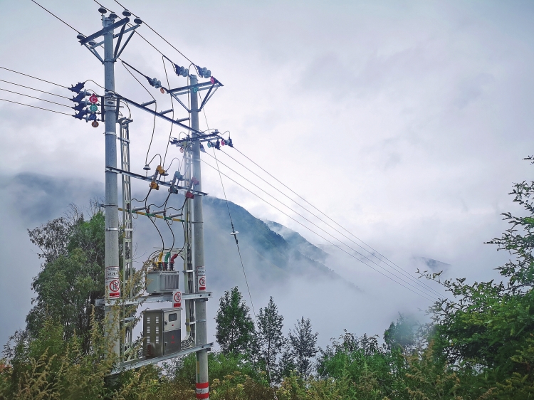 站在10千伏大海線小江支線5號電桿變壓器附近的平地上,天氣好時能看到凹黑村柴棚子村民小組的全貌。不過這里霧多,10分鐘內,一座山在視野中消失是常事。因此,這小小的變壓器常常不為人注意到,它卻幫了當地村民的大忙。