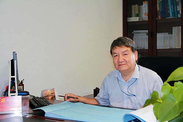 文望青正在審查橋梁圖紙文件(李光偉 攝)