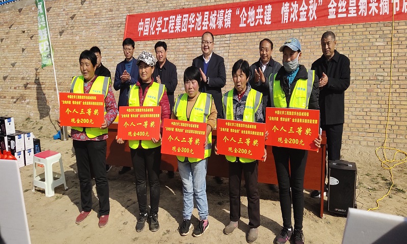 2018年建成的62座鋼架大棚持續發揮作用,2020年種植的金絲皇菊長勢喜人,中國化學工程華池縣城壕鎮“企地共建 情濃金秋”金絲皇菊采摘節和采摘技能競賽活動成功舉辦,進一步宣傳和推動金絲皇菊產業發展成帶動莊科村及周邊群眾增收的特色產業。