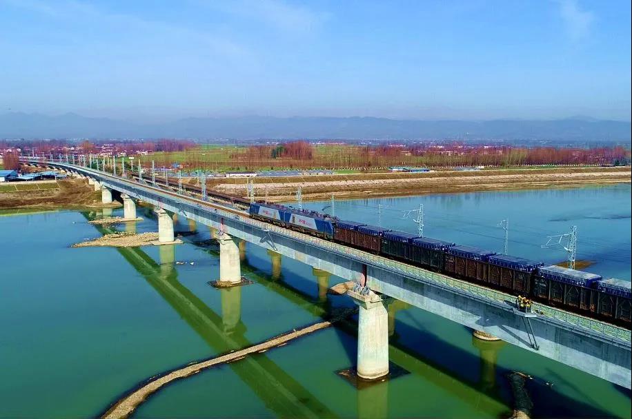 開通后的陽安鐵路二線洋縣漢江特大橋