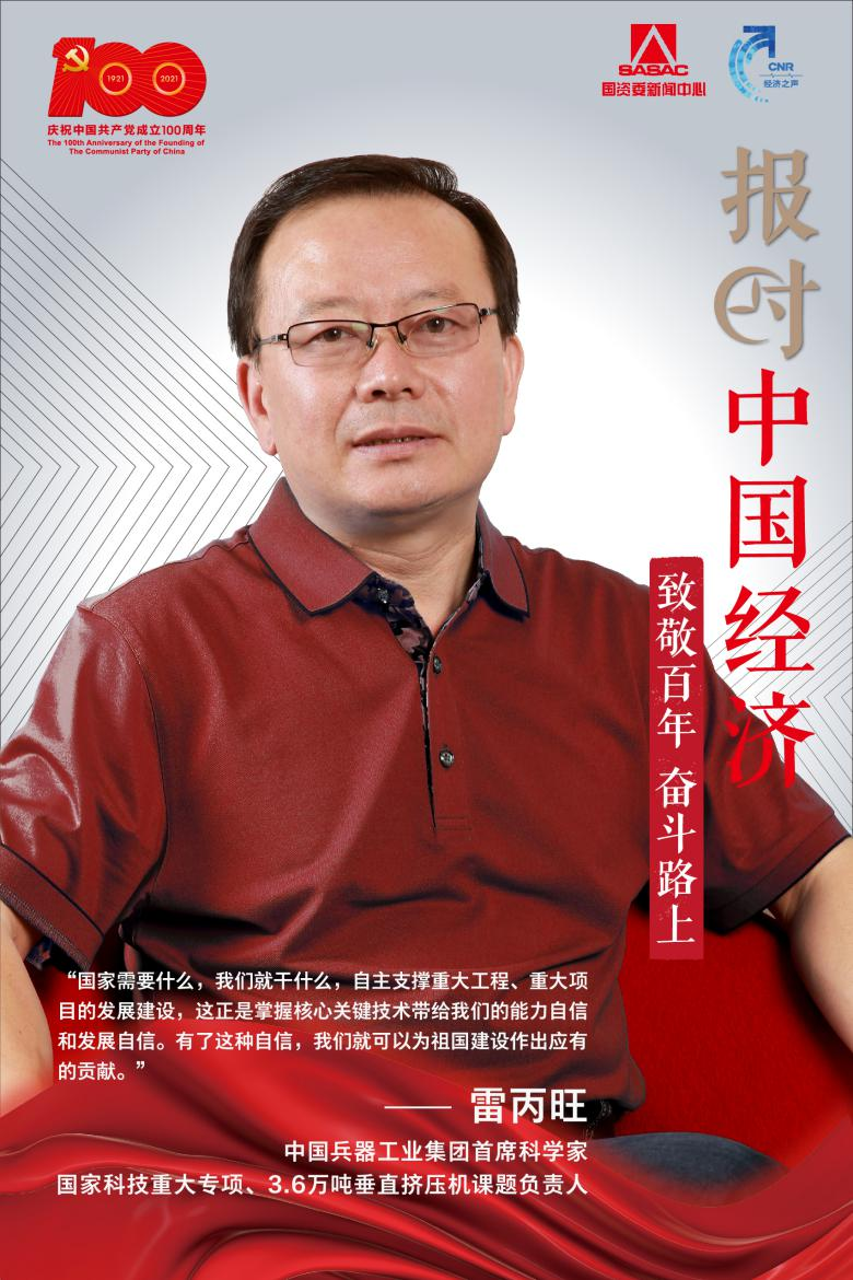 雷丙旺,中國兵器工業集團首席科學家,國家科技重大專項、3.6萬噸垂直擠壓機課題負責人。參加工作三十多年來,雷丙旺扎根邊疆,潛心武器裝備關鍵材料科研生產核心領域,帶領團隊完成我國極端制造的“大國重器”——3.6萬噸黑色金屬垂直擠壓機生產線建設,一舉打破國外技術封鎖,使國產自主研發的極端制造裝備取得多項國際、國內第一,為我國高端難變形合金材料自主研發作出突出貢獻。