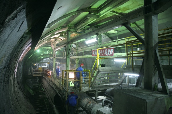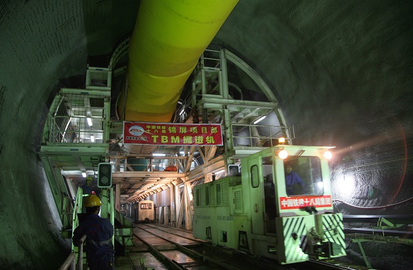 四川錦屏二級水電站一號隧洞TBM掘進機作業場景。