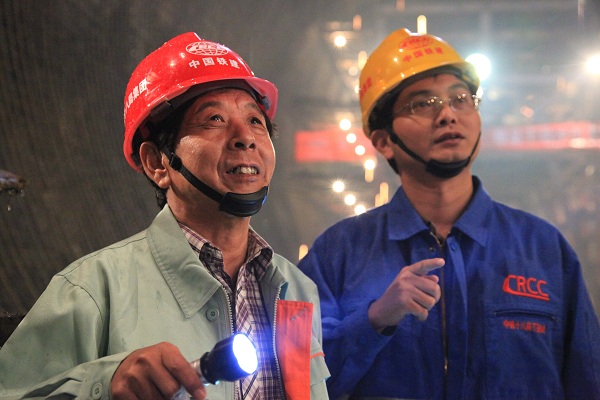 為了確保錦屏水電站1號引水隧洞達到試通水條件,中國鐵建十八局集團錦屏電站項目經理孔凡成(左)和項目部工程技術人員晝夜堅守在施工第一線。
