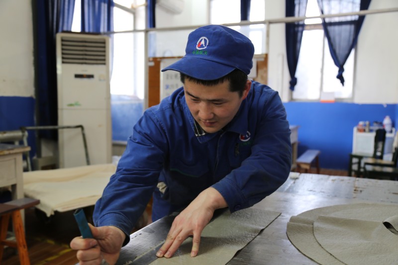 “要想干好絕熱層制作,擁有屬于自己的一把刀是敲門磚,從刀的設計、打磨到使用,都得精益求精。”師傅周樂意告訴他。深受師傅教導的他每天猶如苦行僧般重復著打刀、磨刀過程,很快他便掌握了刀具的設計、磨刃技巧。拿著這把精心磨制的刀,跟著師傅學絕熱層操作,師傅操作的時候他站在旁邊一遍遍模擬,從下刀的角度、位置……白天把每個環節難點記在本子上,晚上抓緊看,琢磨技巧,一點點的積累知識。