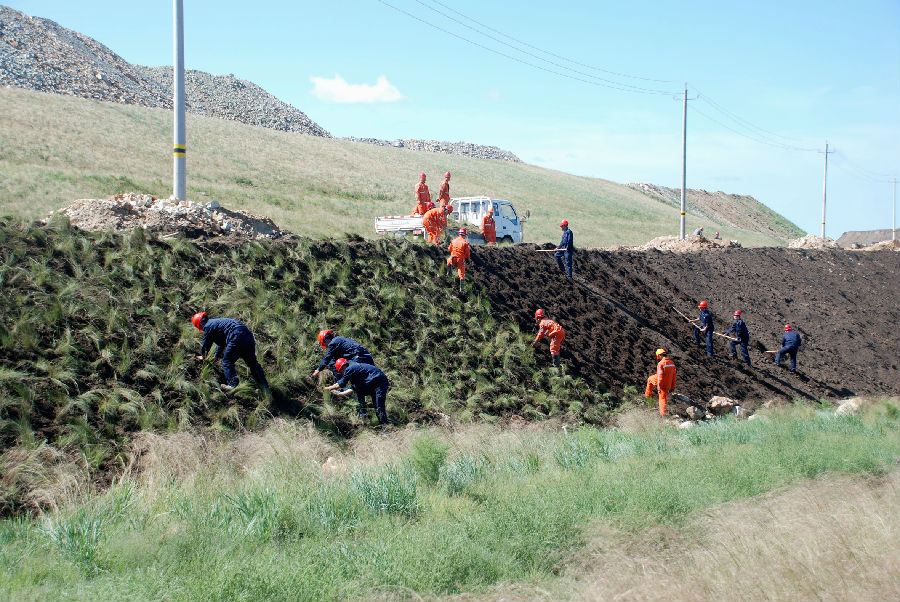 近幾年,烏山在礦區內栽種各類樹木6萬余棵,對內外公路、生活區和營區全部實施綠化。為改善草原生態,在業主的大力支持下投資6000余萬元,實施了亮化、美化等配套工程建設。與此同時,按照不同的生態功能作用,將礦山區域內劃分為土地復墾區、水土流失治理區、工業場地與道路園林綠化區、草原生態恢復帶與景觀生態建設區,并開展有特色的綠化美化方式。目前,復墾面積達到200多萬平方米,在尾礦庫與采場周邊多處進行水土流失治理,礦區內可綠化的區域基本全部進行了綠化?!熬G水青山就是金山銀山”,正是有著這樣的理念,指導著項目上下深化綠色礦山建設,把環保工作貫穿于設備選型、施工生產的全過程,不斷美化項目駐地、綠化環境,積極改善區域生態環境,打造花園式礦山。