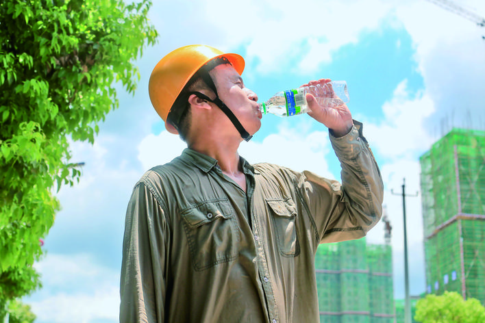 7月18日,江西吉安永豐縣供電公司員工在高溫下工作,渾身都被汗水濕透了