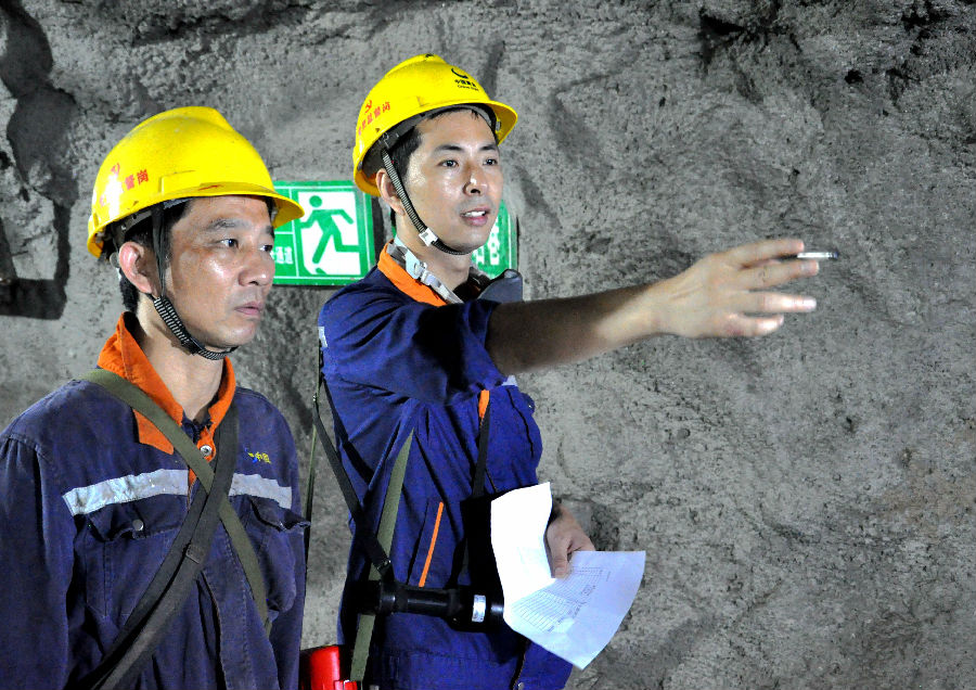 “志兵,-559水平2線的頂板浮石較多,我們一起去現場叮囑他們,做好安全確認?!?月2日早上8點半,在中國黃金湖北三鑫金銅股份有限公司井下-559米水平,采礦車間機械化中段副工段長嚴濤帶著當班值班長胡志兵,來到T721采場檢查現場作業安全。該處由于頂板風化嚴重,盡管嚴濤已在班前會再三強調,但他還是不放心,要再叮囑一下作業工人。