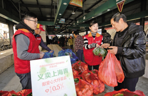 大圩鎮是合肥市主要蔬菜、水果種植基地。2017年2月,大圩鎮生產的蔬菜嚴重滯銷,眼看馬上就要過春節了,菜農們守在大棚面對滿地的蔬菜一籌莫展。隊員張瑩作為駐村聯絡人了解情況之后,第一時間與大圩鎮政府聯系,主動提供幫助。通過發動機關、企業、媒體等力量,采用線上、線下等渠道,張瑩組織多名隊員積極幫助菜農打通銷售渠道,在淝河菜市場等場所擺攤設點,開展蔬菜愛心義賣活動。短短幾天,黨員服務隊幫助菜農銷售蔬菜超過5萬公斤,解決了種植戶的燃眉之急。