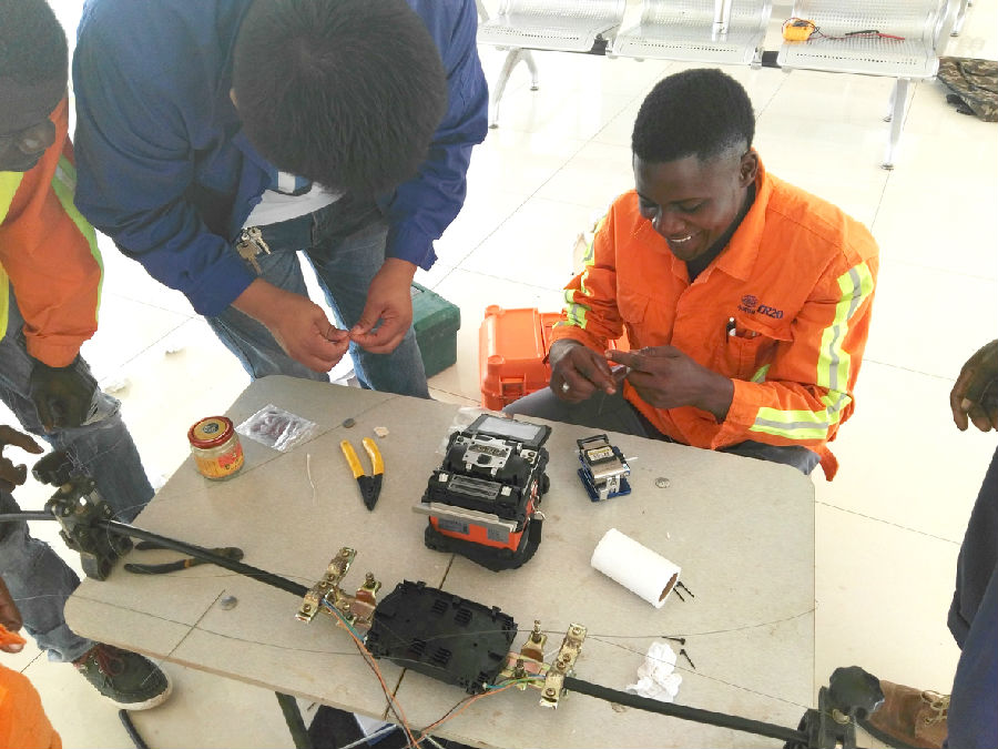 從最初的打零工,到如今的安籍電務“專家”,喬尼的工作能力得到了項目部的認可。不久前,他被項目部評選為“技能之星”,并且與11名安哥拉籍優秀員工代表一起,到中鐵二十局中國總部參觀學習。