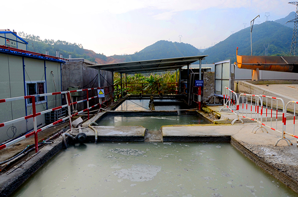 在拌合站的大臨建設中,建設者規劃安裝了廢水處理系統,設置了三級沉淀池,排放的污水經沉淀后形成的清水,可以循環使用,沖洗罐車或者對道路進行灑水降塵。