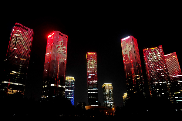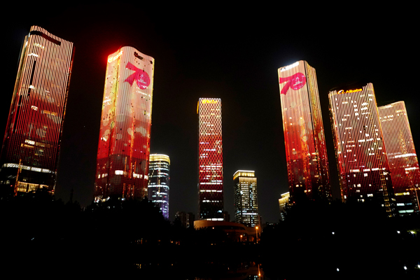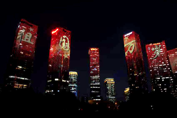近日,在北京“國門商務區”大望京CBD建筑群,一場美輪美奐的燈光秀正在上演,點亮了整片夜空。千人駐足、萬人直播的大望京燈光秀用其獨特的方式慶祝新中國成立70周年。
