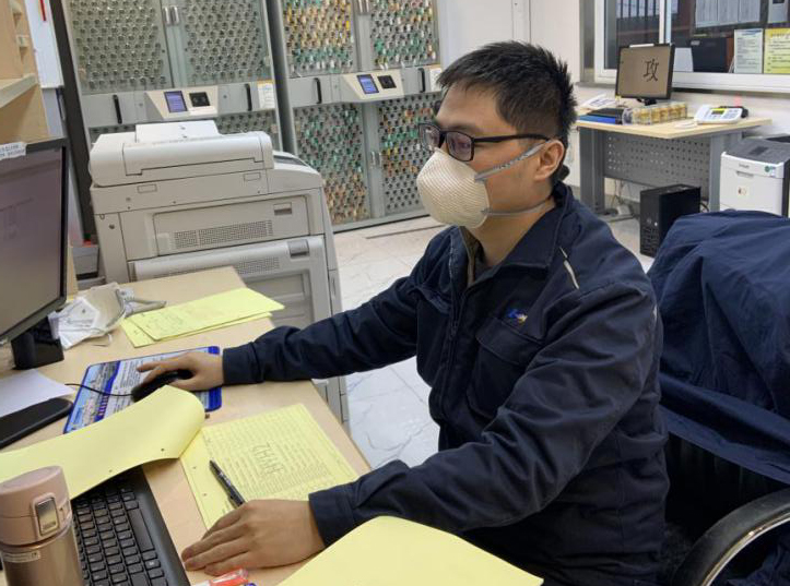 同一時間,戴著口罩的孟雷在委培單位運行值班,守護核安全、為電力供應做貢獻。