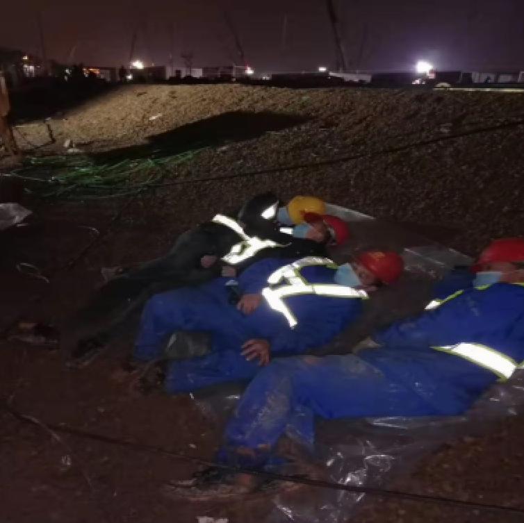 輕飄飄的“吃點苦”三個字后面,其實意味著工期緊張、作業(yè)面狹窄、安全管控嚴格、防護物資短缺等重重困難。雷神山醫(yī)院工地7.5萬平方米的現(xiàn)場匯集了數(shù)十家參戰(zhàn)單位,同時聚集了三四千名施工人員。最大的困難就是場地協(xié)調問題,擬建管道上方堆滿了各家單位的物資設備,現(xiàn)場挖機吊車騰挪困難,不同管線之間交叉來往。在現(xiàn)場異常緊張的形勢下,雷神突擊隊一邊清理堆積物資,應對接連不斷的變更,一邊避開高峰期埋設管道,見縫插針,一米一米往前推進施工斷面。