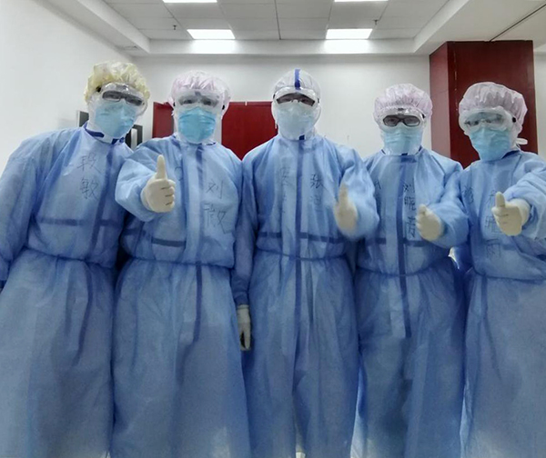 我們看不清彼此的樣子,只能相互揮揮手,勇敢如戰(zhàn)士。前兩天聽說我的同事任志強(qiáng)主任和王瑞敏主任也來武漢了,我們在電話里相互鼓勁加油,現(xiàn)在武漢又多了他們,我感到特別踏實。