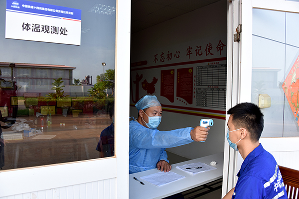 中鐵十四局安哥拉項(xiàng)目群設(shè)置專職醫(yī)生,負(fù)責(zé)采購防疫物資和藥品,每天為中外員工進(jìn)行體溫檢測
