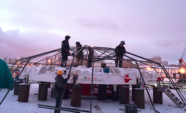 焊接工作必須在0攝氏度以上才能進(jìn)行,而莫斯科天氣極寒。項(xiàng)目團(tuán)隊(duì)因地制宜,對(duì)刀盤、盾構(gòu)搭設(shè)保溫棚,對(duì)焊接面及時(shí)覆蓋保溫棉進(jìn)行保溫,對(duì)已完成的每層焊縫進(jìn)行著色探傷試驗(yàn)……盾構(gòu)盾尾、刀盤焊接工作終于按期完成,為4月底盾構(gòu)始發(fā)創(chuàng)造了條件。