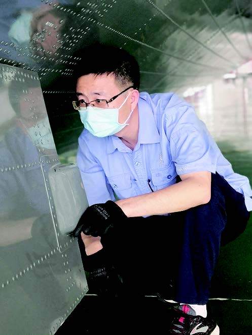 為保證試驗精度,郭佳帶領機務團隊成員爬進了高度易燃的油箱里,用手、海綿和抹布一點點地將每一個隔框、每一滴燃油擦拭干凈。盡管戴著防毒面具、穿著防靜電服,但高濃度的燃油蒸汽還是滲入到了他的皮膚里,郭佳出現了過敏反應,全身長滿了紅色的疹子。他咬緊牙關,連續工作了七天七夜,帶領團隊保質保量完成了試驗任務。