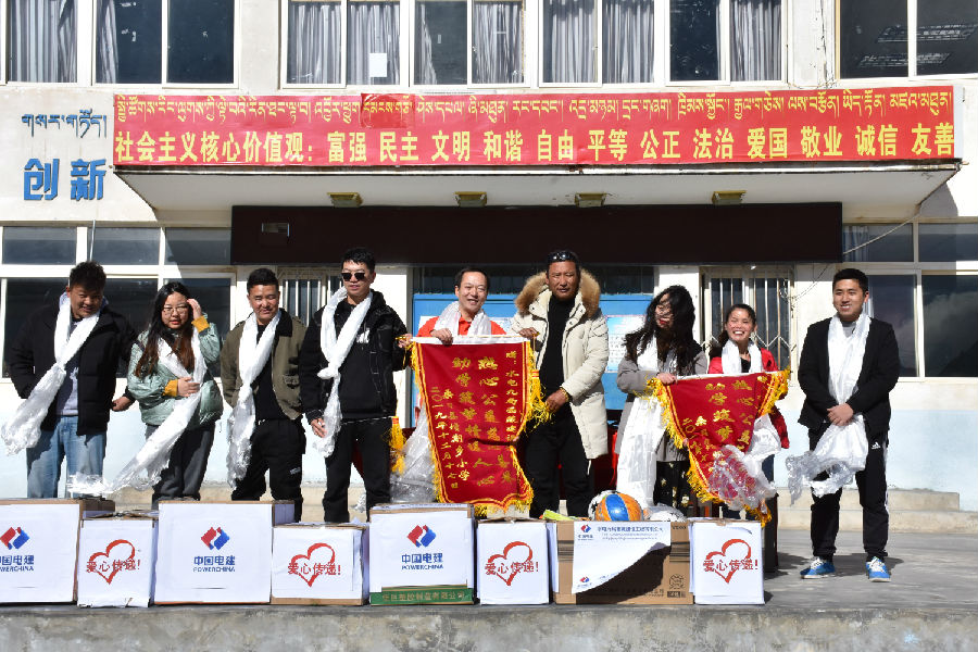 2020年,水電九局采購牦牛肉、青稞面等當?shù)靥厣r(nóng)產(chǎn)品,以捐代購,助推消費扶貧。組織全體職工通過公益捐贈方式,向當?shù)匦W捐贈體育器材、御寒衣帽,“助學筑夢情暖人心,熱心公益慈心善舉”錦旗飄飄,當?shù)卮迕駬P起了笑臉。