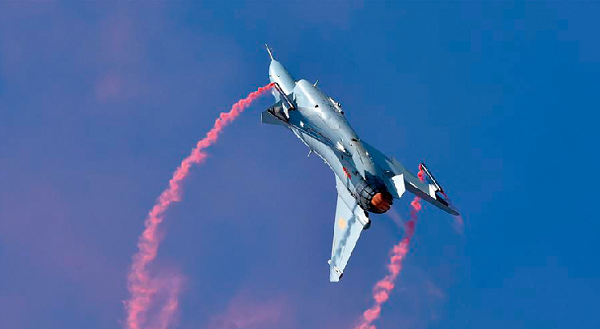2018年11月6日,中國航空工業(yè)自主研制的殲-10B推力矢量驗(yàn)證機(jī)在第12屆中國航展上正式“出道”。現(xiàn)場展示了“榔頭”機(jī)動、“赫伯斯特”機(jī)動、“眼鏡蛇”機(jī)動、“直升機(jī)”機(jī)動等典型過失速機(jī)動飛行動作,場面相當(dāng)震撼人心。